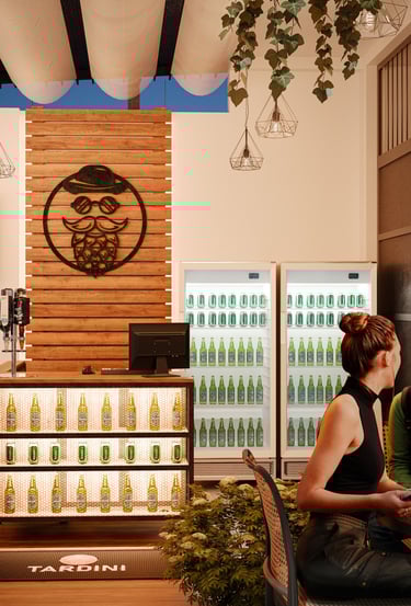 Diseño de patio cervecero donde creamos un lugar para pasar un buen rato acompañados de una buena cerveza.