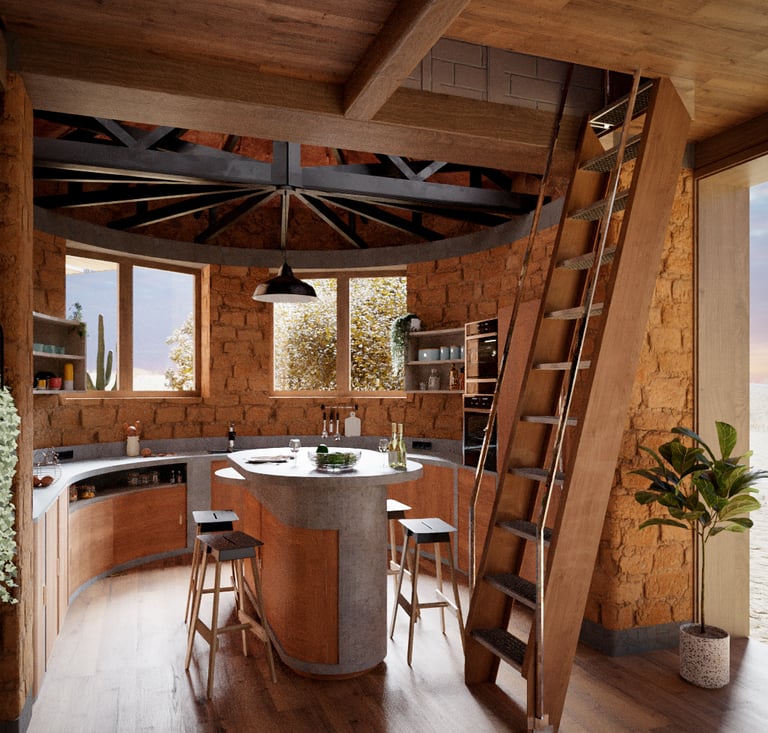 Diseño de una residencia rural emplazada en un ambiente cálido y seco implementando conceptos de eficiencia energética especualmente en vientos y soleamiento.