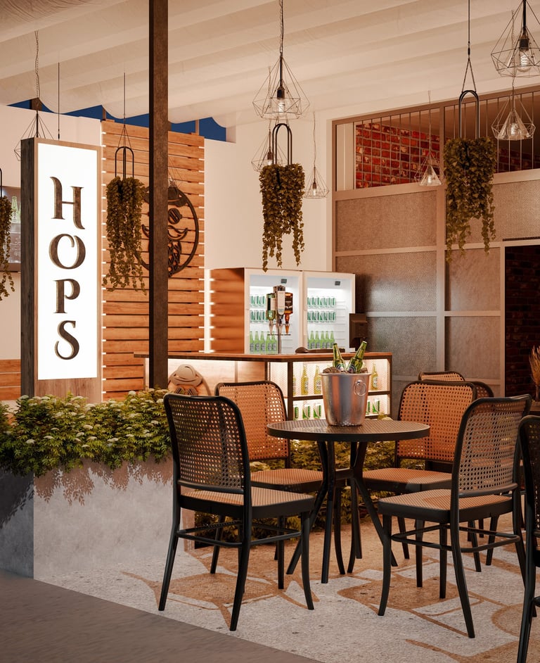 HOPS busca ofrecer su deliciosa cerveza artesanal en un espacio que refleje su calidad, su sabor y su estilo. Ubicado en Catamayo - Ecuador, ciudad de clima cálido es el ambiente propicio para una cerveza helada, sin embargo por su ubicación se enfrenta a problemas de inseguridad.